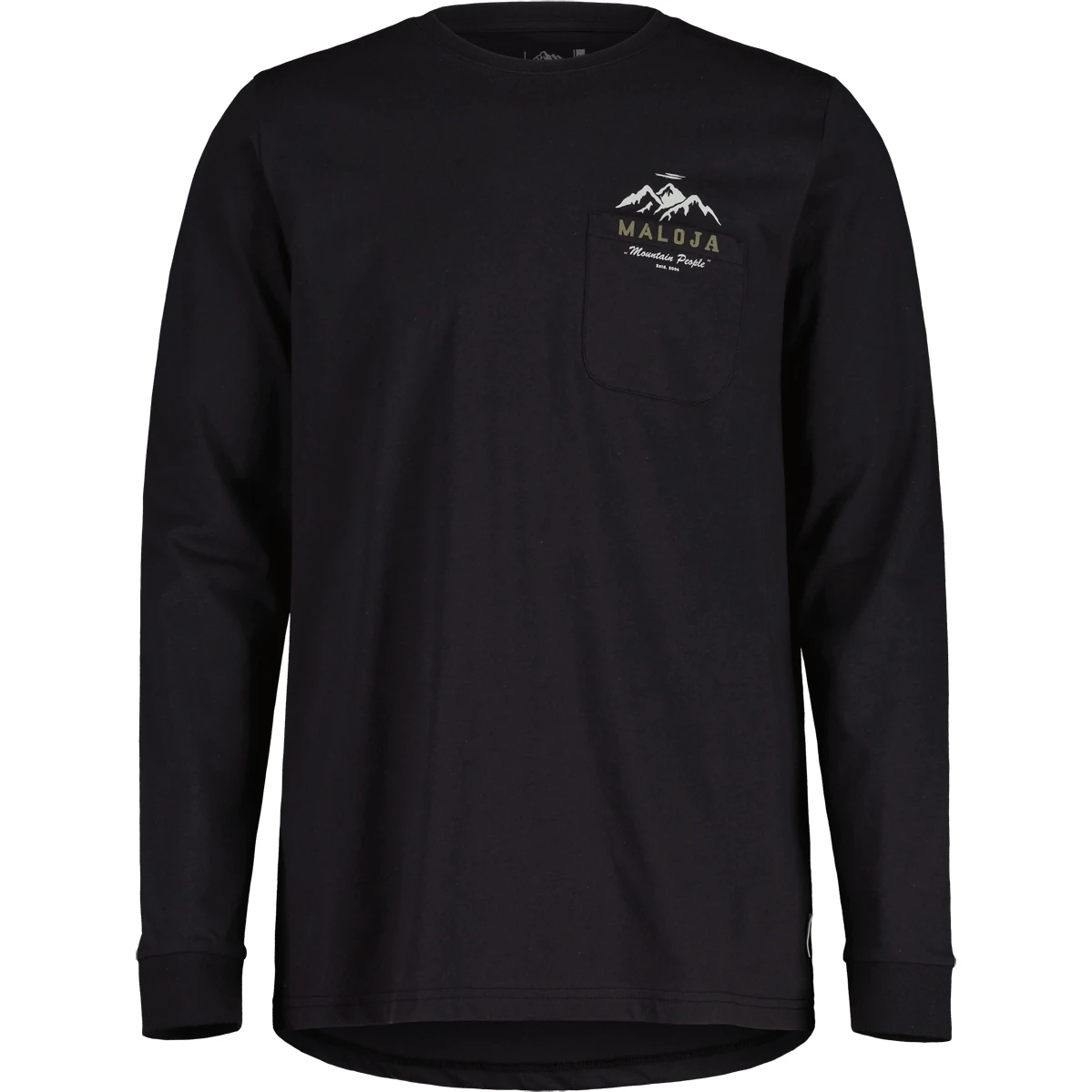 Loose-fitting longsleeve made of fair and organically produced cotton, online trackable according to bioRe standard. Ribbed cuffs, slightly longer back, patch chest pocket with small Maloja mountain print.