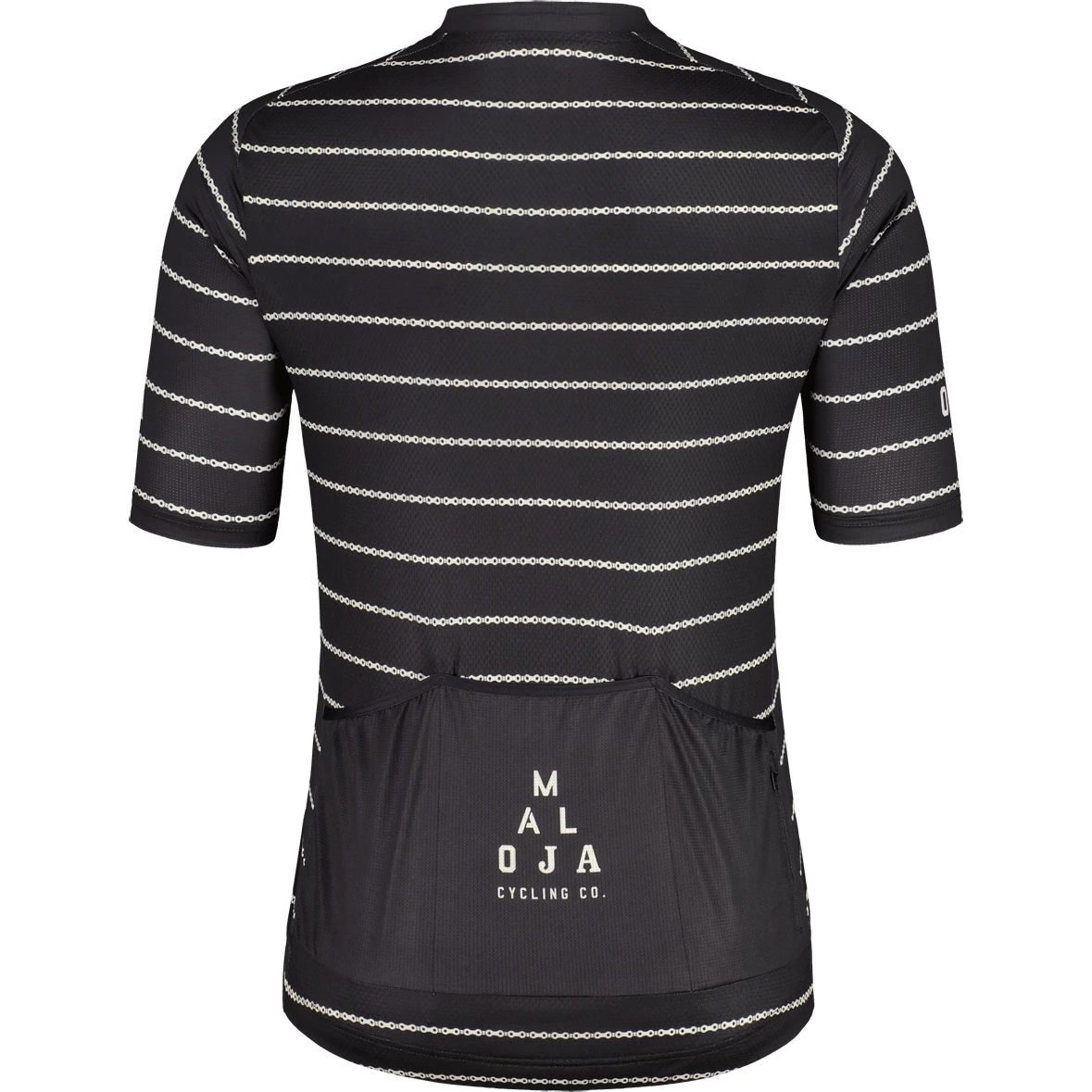 Road bike jersey with a tight cut and mesh inserts on the sleeves and side panels for good ventilation. Three back pockets and an additional mobile phone pocket with zipper. Classic striped design, triangular Maloja lettering on the sleeves and back pocket, mountain patch on the chest. Equipped with Polygiene StayFresh™ technology, the growth of odor-causing bacteria in the jersey is inhibited. So it stays fresh longer and must be washed less often. This saves water, energy and time – and extends the product’s lifetime.