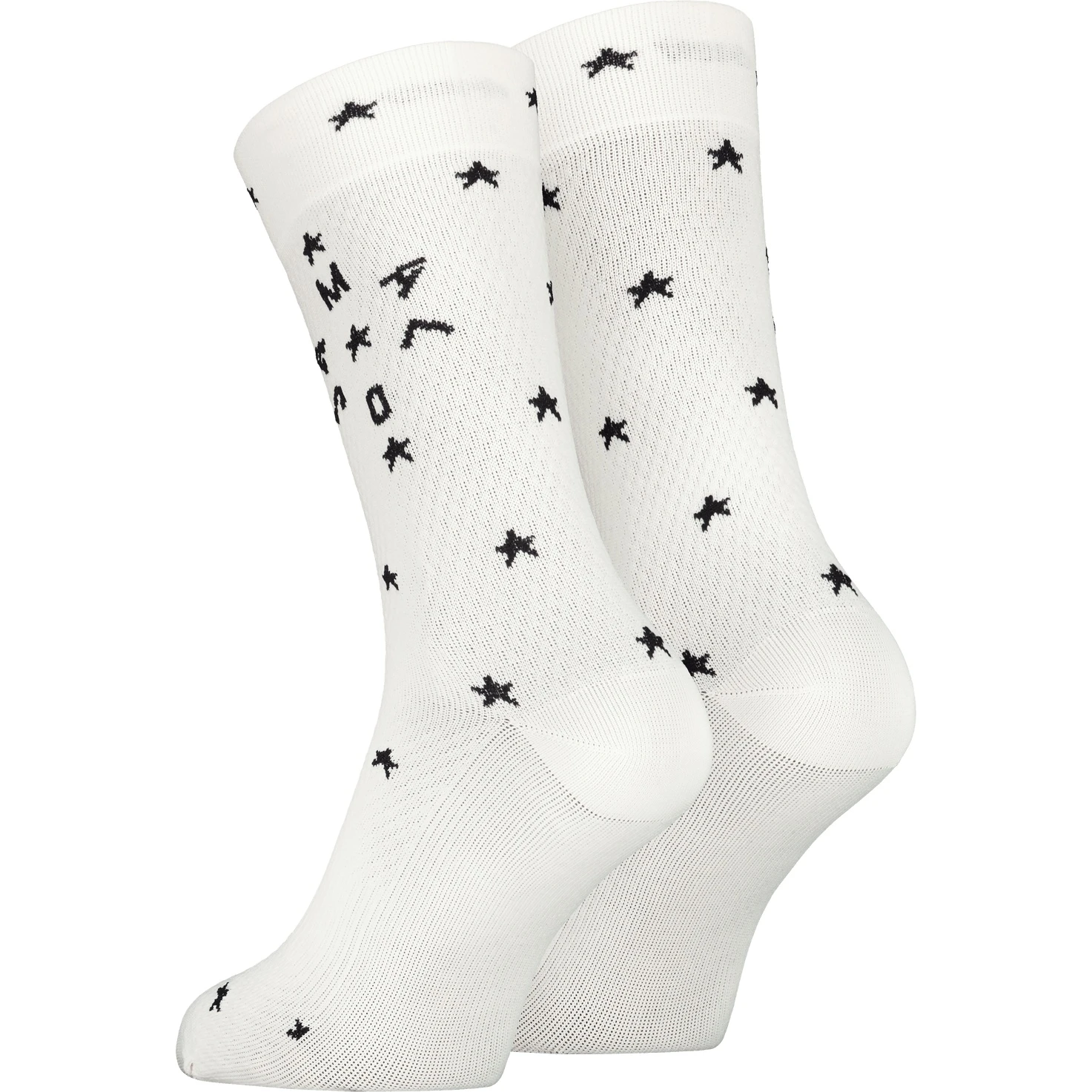 Quick-drying sports socks in modern length with allover stars and Maloja lettering.