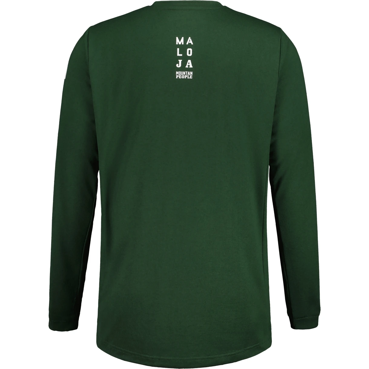 The material mix of recycled polyester and hemp ensures a pleasant, natural feel and dries quickly. Pocket for lift pass, keys or money integrated in the left side panel. Fresh color variations and Maloja lettering on the sleeves and back, Mountain People patch on the front.