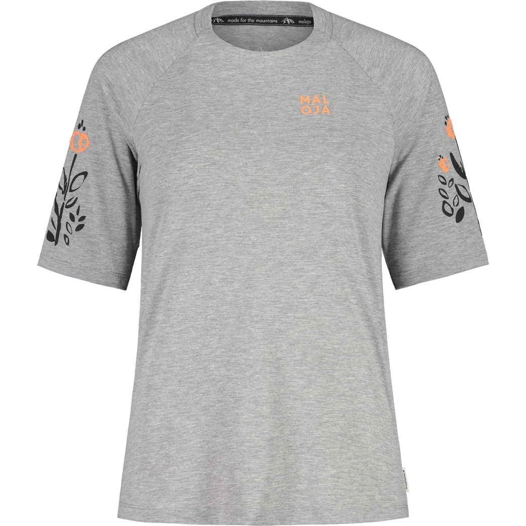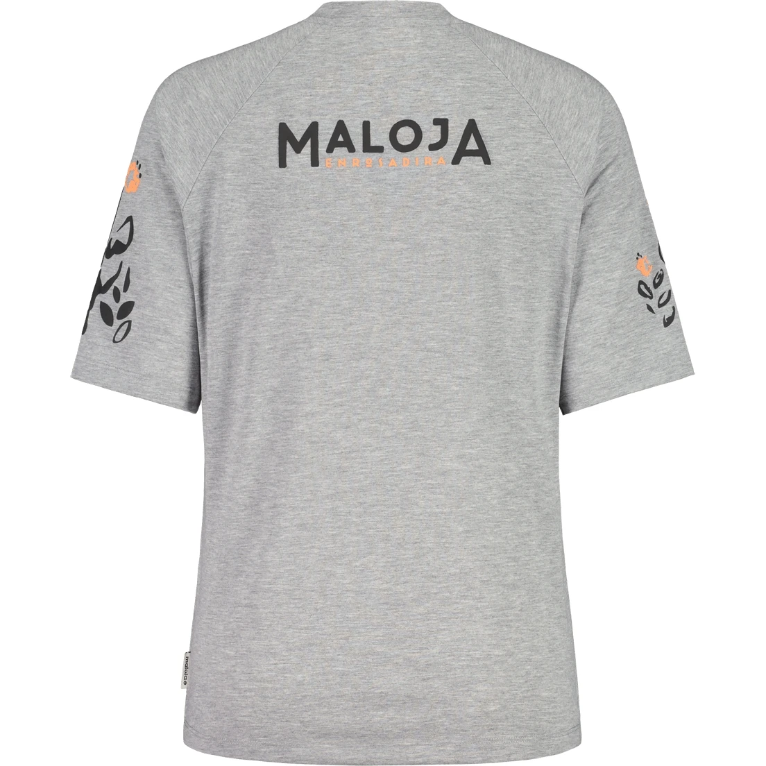 The loose-fitting shirt is made of high-quality Naturalon, which dries quickly, but feels very natural and wears comfortably. The raised floral rubber prints on the sleeves and Maloja lettering on the chest and neck are nice design details.