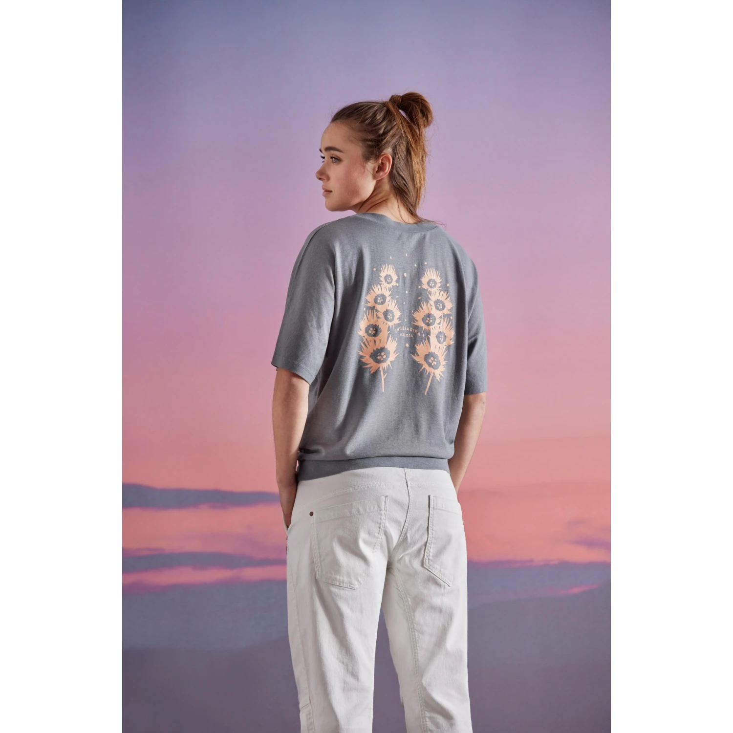 Wide cut t-shirt in organic cotton and hemp blend with modern floral print on the back.
