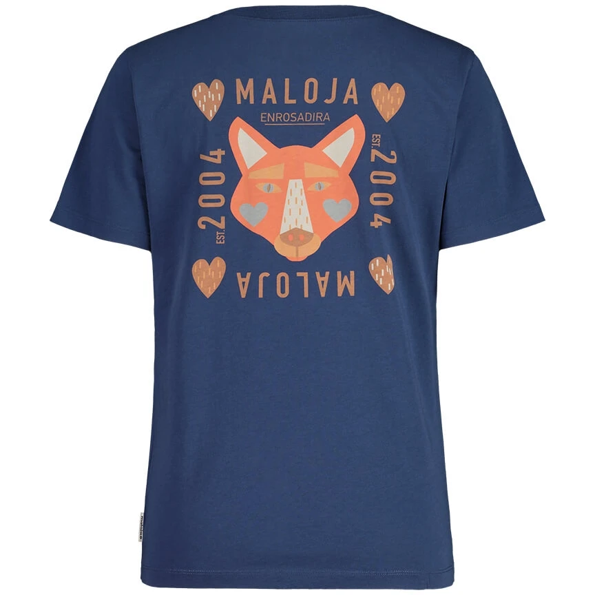 Basic organic cotton T-shirt with large fox print on the back and Maloja lettering on the chest.