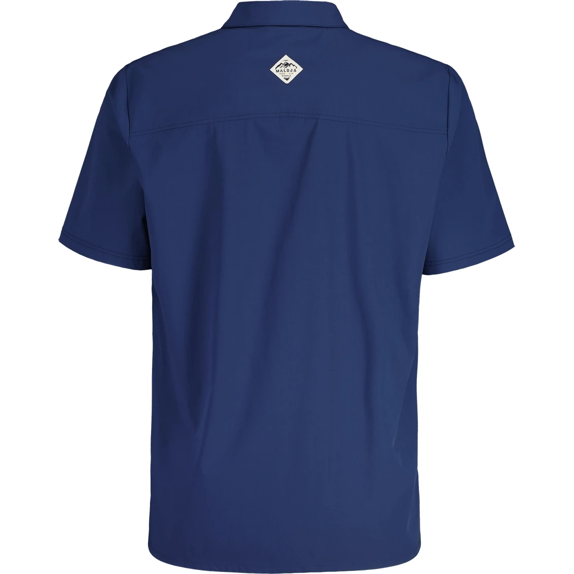 A classic half-sleeved shirt with a narrow collar and full-length button placket, the technical material ensures high breathability and dries quickly. Printed breast pocket with button closure, Maloja patch on the back.