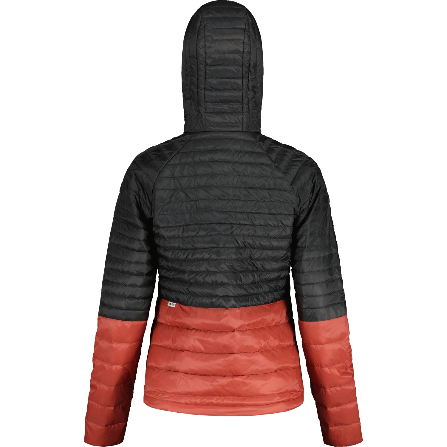 Hooded slip jacket with recycled down filling, zipped front opening, side slip opening in the side seam, small pocket with concealed zipper. The iso-layer is windproof and small packable in the pocket, therefore works solo or as a second layer under a shell – as a sporty companion in the city or light companion for tour and outdoor.