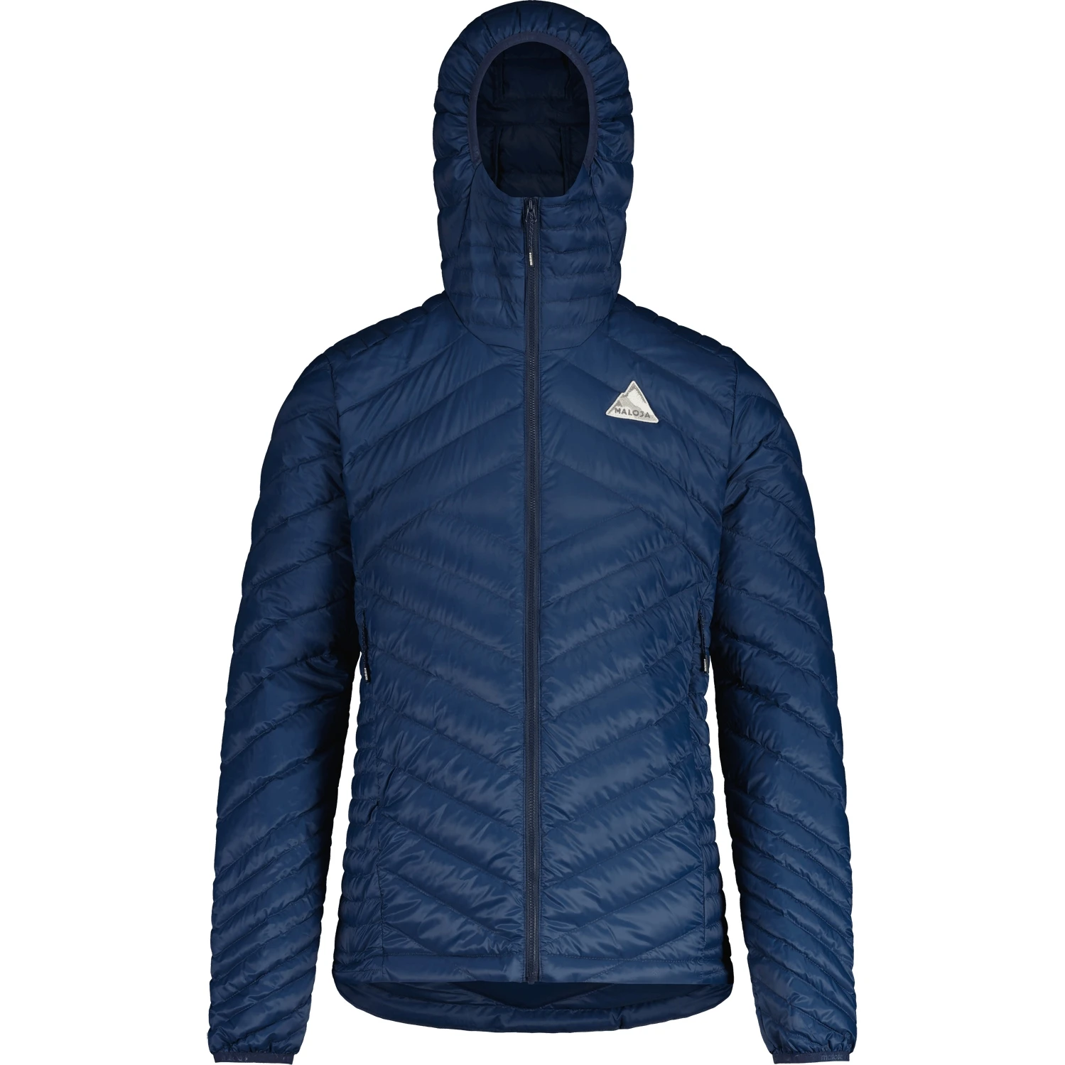 With its 700-fill made from recycled down, this lightweight insulation jacket guarantees cozy warmth and, with its graphic quilting, is suitable for use on the mountain as well as in the city. For transport, SteinbockM. can be packed small in the integrated pocket, due to the cut also ideal as an insulation layer under a shell. Maloja Mountain patch on the chest.