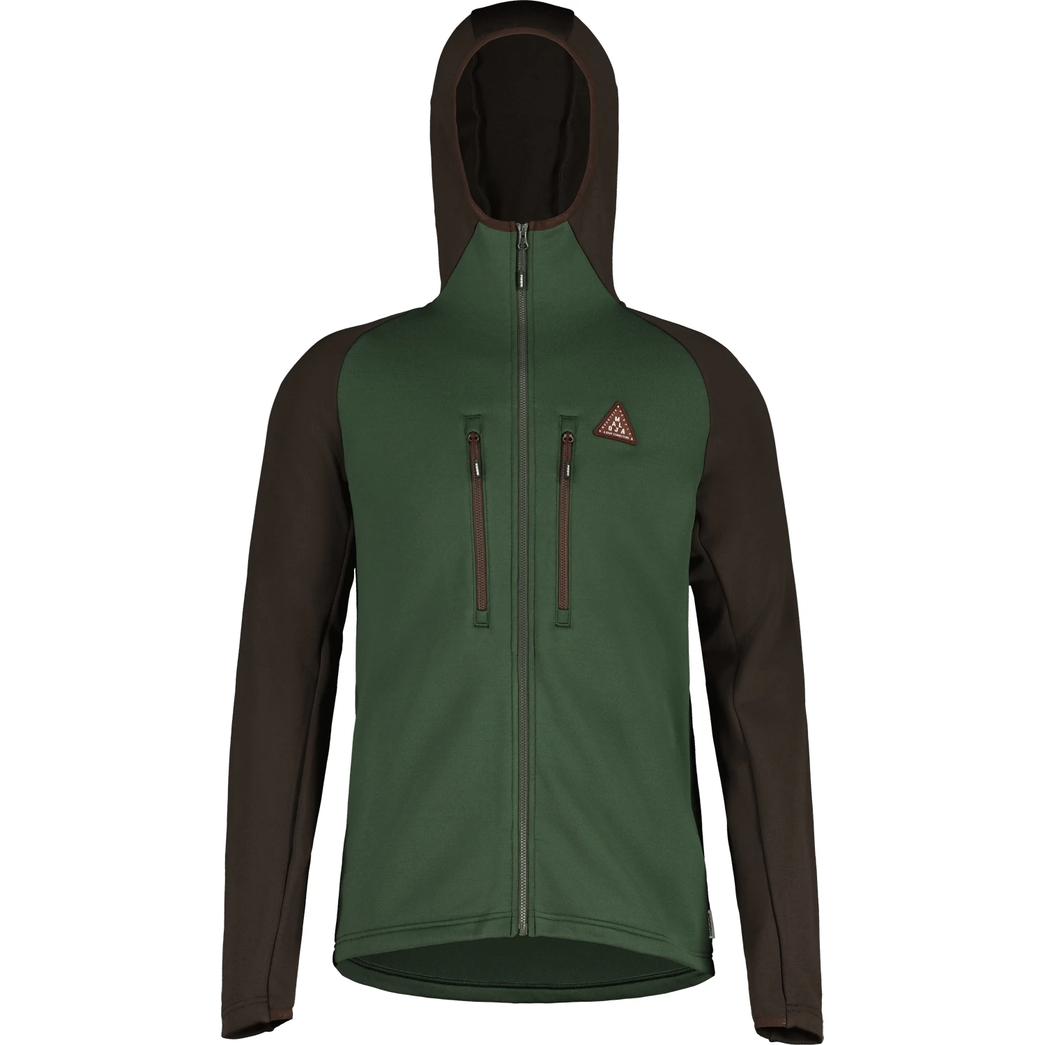 Cozy midlayer made of quick-drying, biodegradable material. Two zippered pockets at chest level, Maloja embroidery on the chest, Enrosadira label on the back.